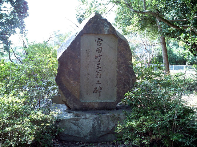 | A の場所から 西方面を撮影。鳥居から少しすると、宮田竹三翁 の石碑がある。 |